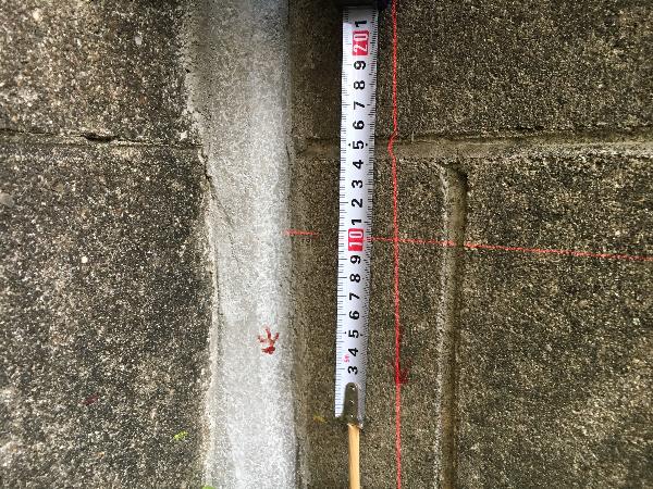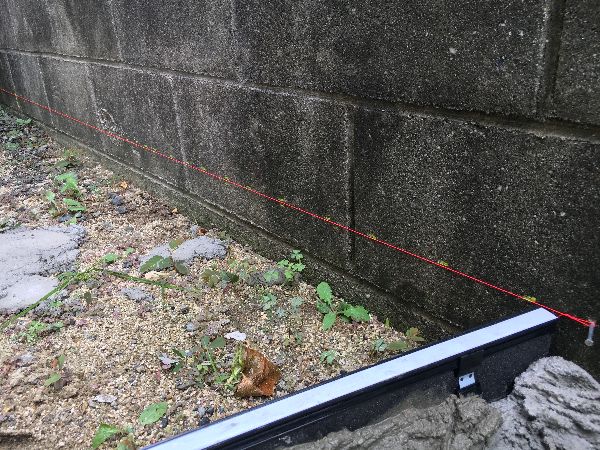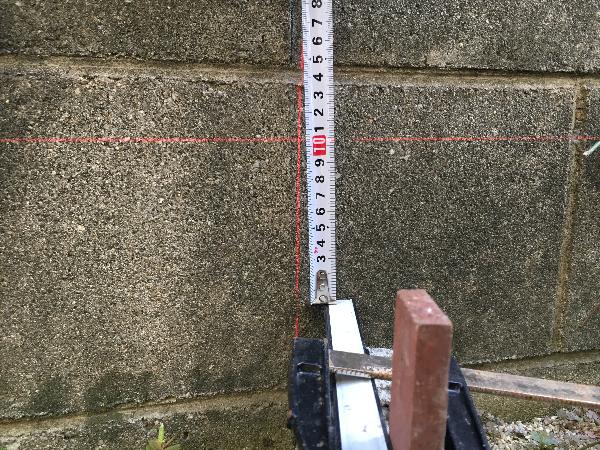 左右の出来上がり高さを最終チェックしそのレベルをブロック塀と