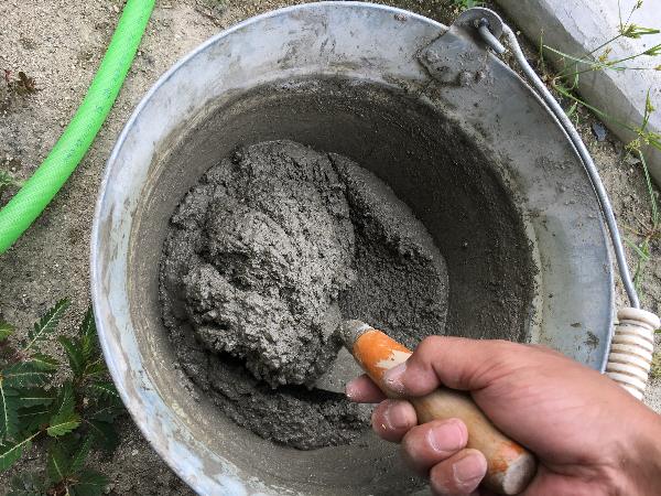モルタルはバケツで練り、コンクリート打設側に盛り付けるように