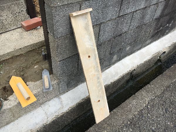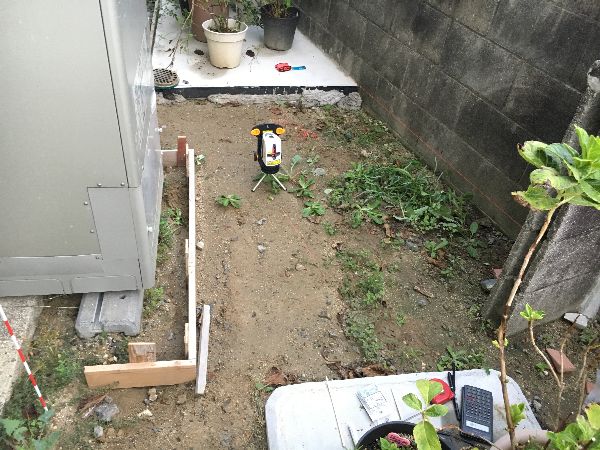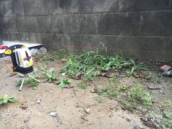先ず、水勾配を考えてブロック塀がわの高さ基準から決めて、
