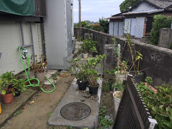 デコボコ浄化槽有り、排水角升有り、雨どい排水管有り、
