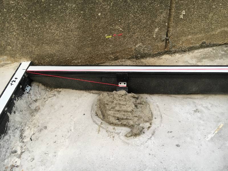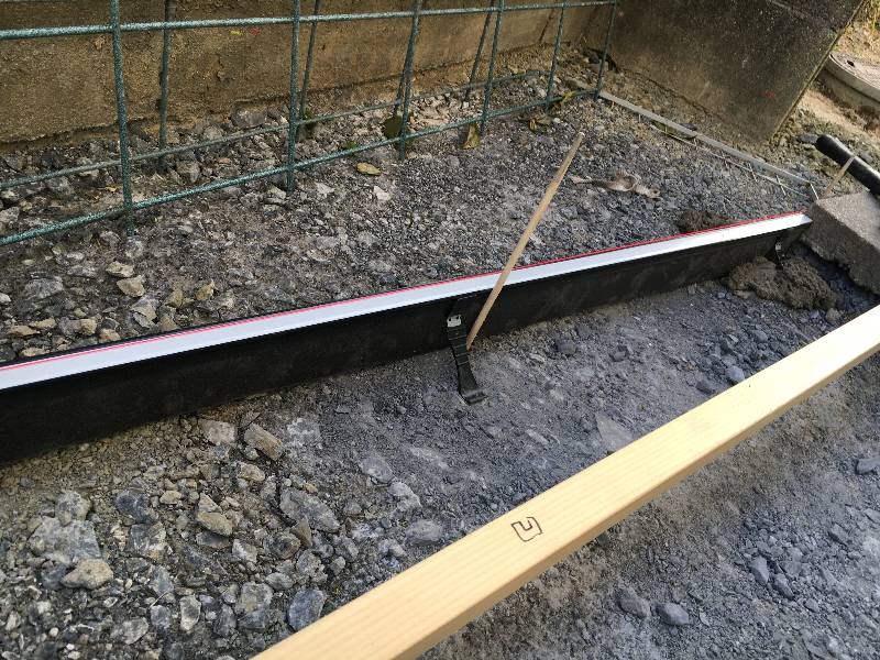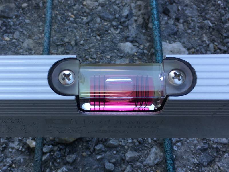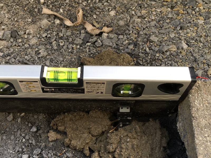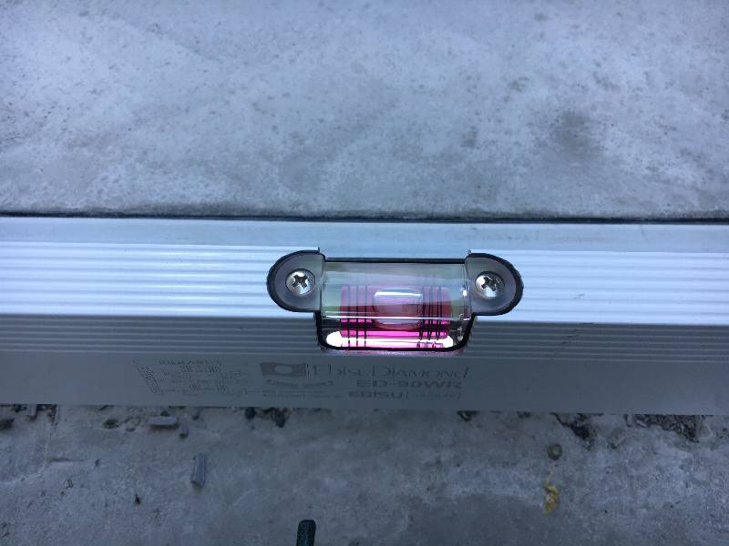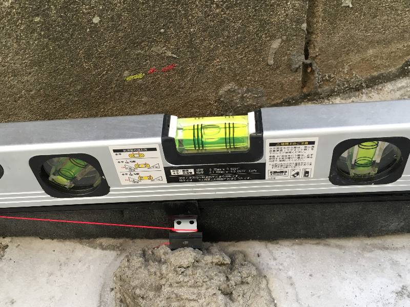 目地材のスタンド部分をモルタルで固定して、水平器を乗せてみたら