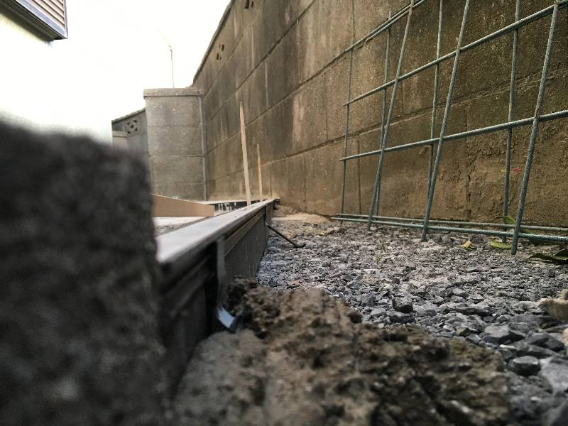そうすれば雨水は犬走り側に寄るか或いは塀側に寄るかは