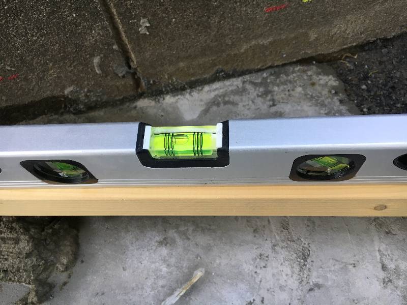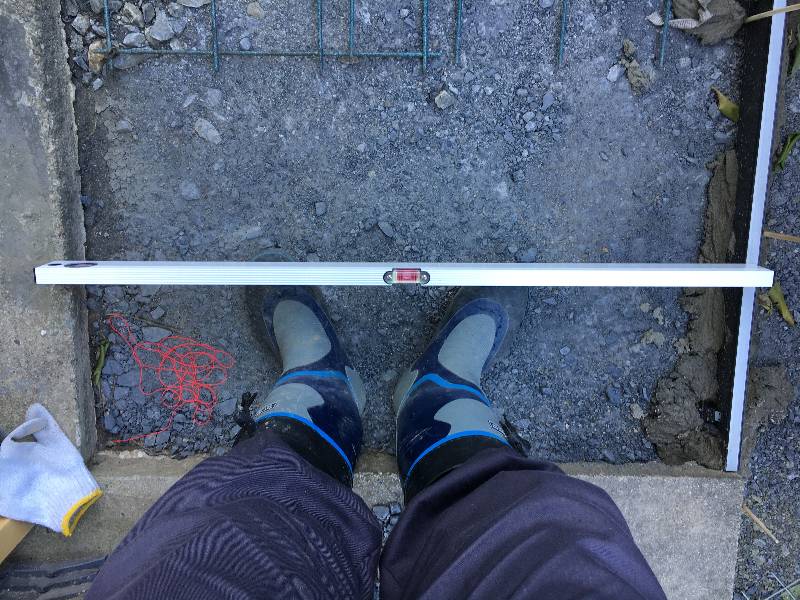 同じく中間地点と犬走りに近い側それぞれも何とか右下がりに
