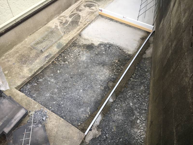 右写真は犬走りへの寄り付きで面切りを入れているところです。