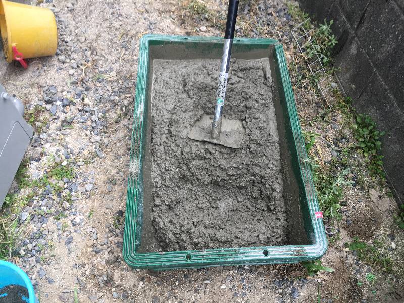 その配合比は1:2.5:3.5で、水は前回のセメント比0.6で行った結果、練り易い