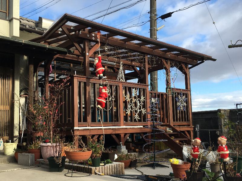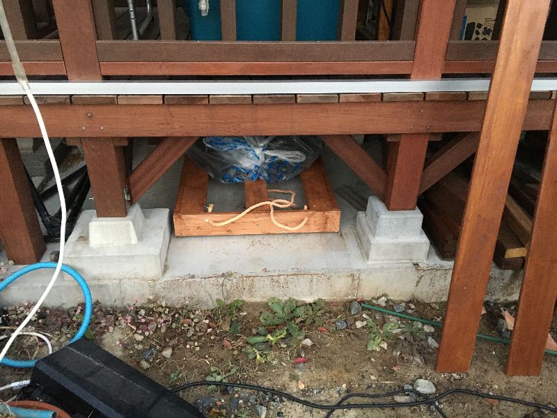 屋根付きのウッドデッキの床下なので