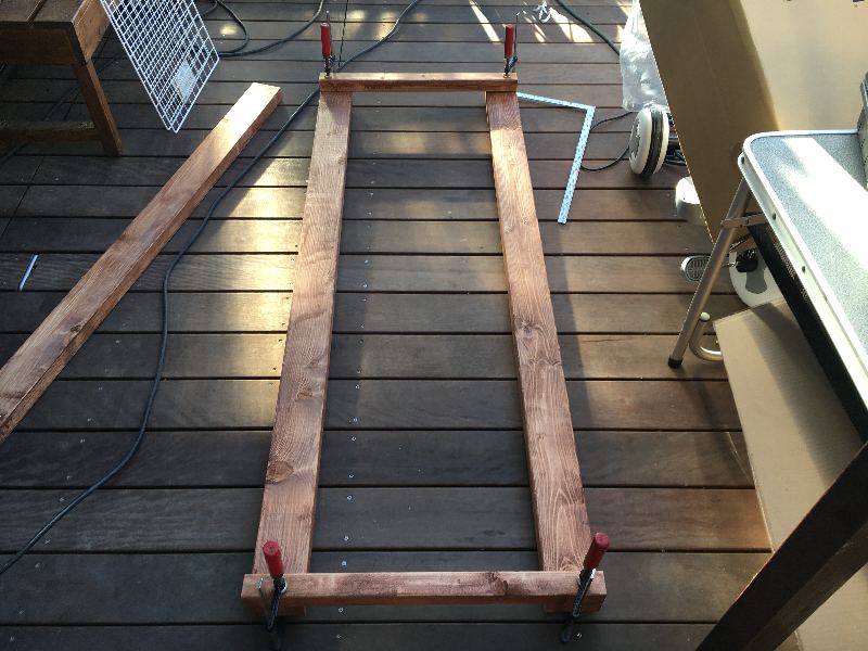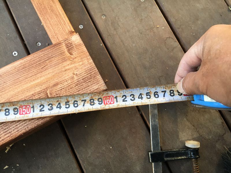 枠の仮組が出来たらこうして対角を見まして。