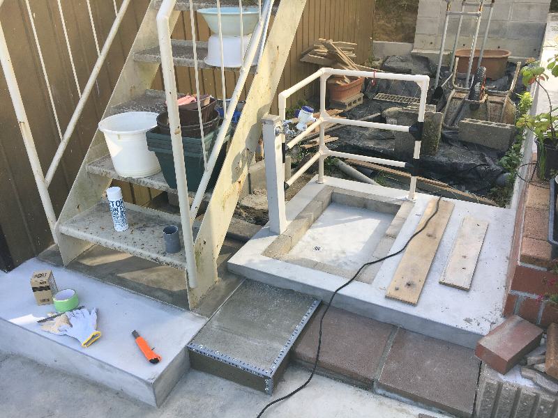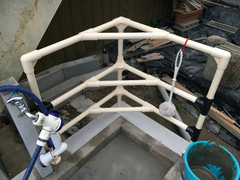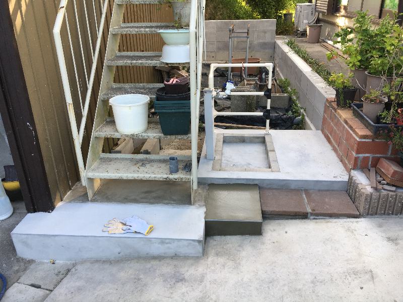 このようにコンパネで枠を作ってモルタル投入。