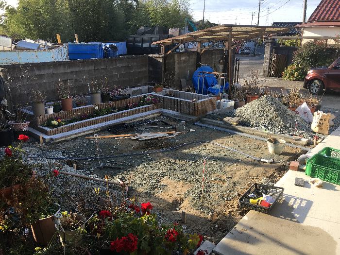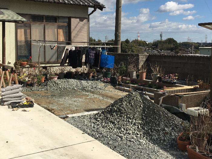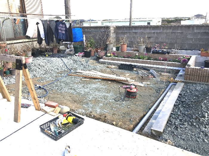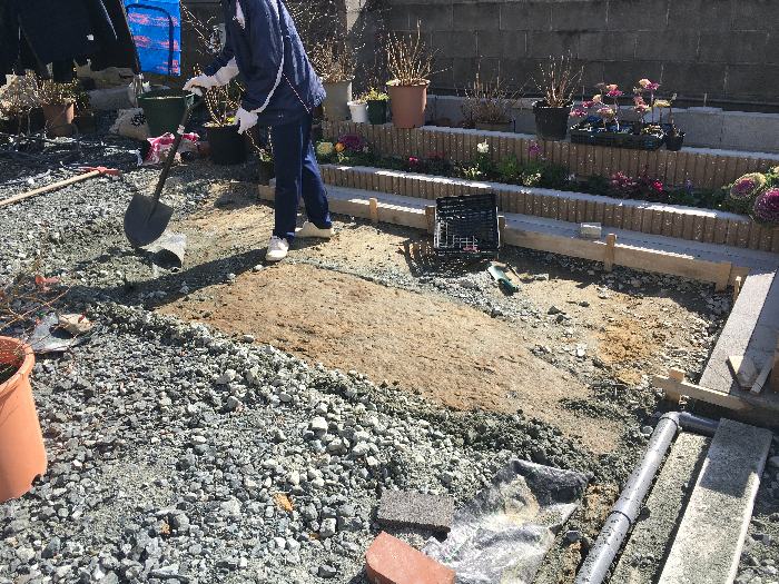 この憩いの場が完成したらコンクリートアプローチとの間に出来る