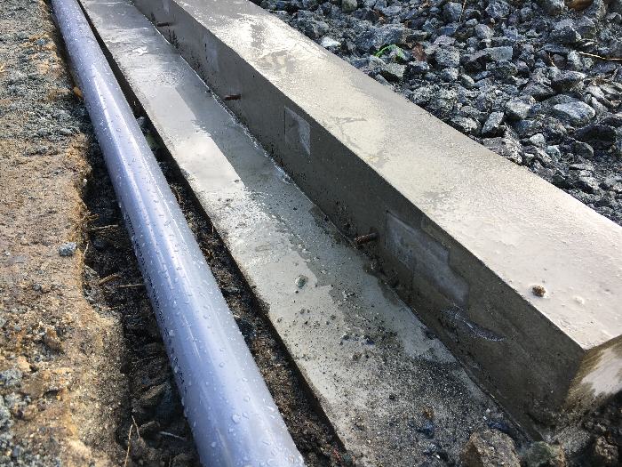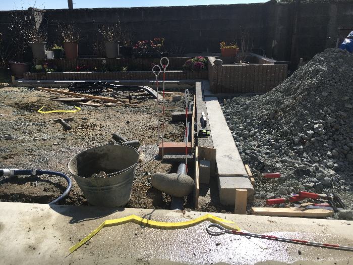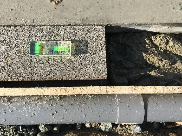 セメントレンガは花壇側から1/100勾配、そしてコンクリート