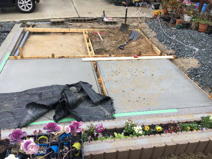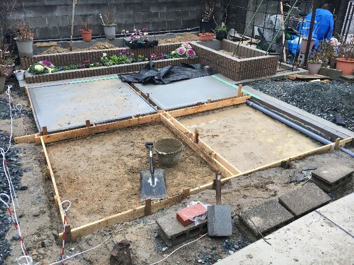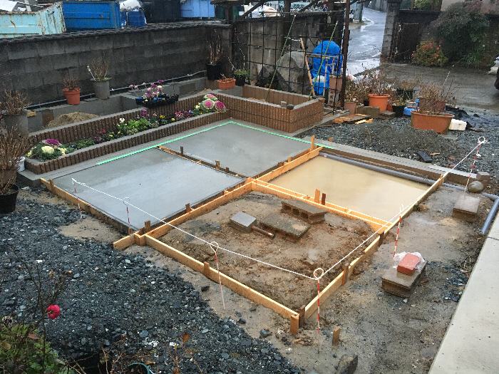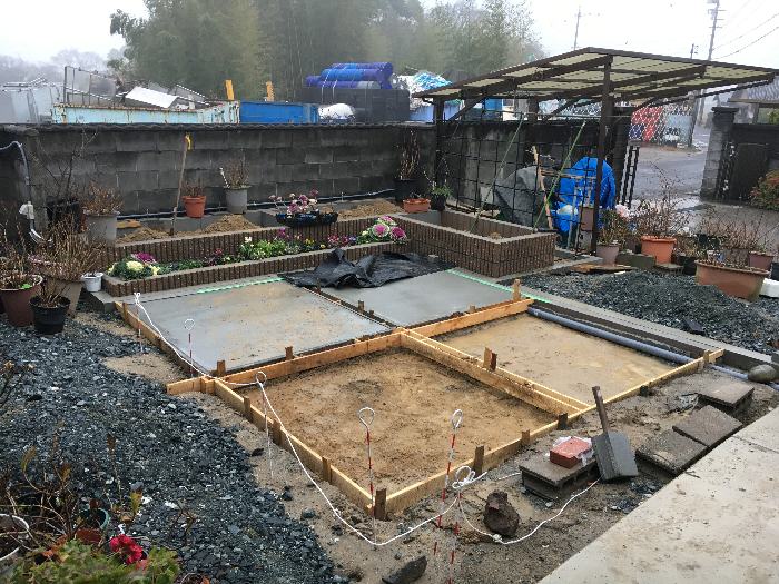 奥の2か所の土間コン打設が完了していよいよ手前の区画の