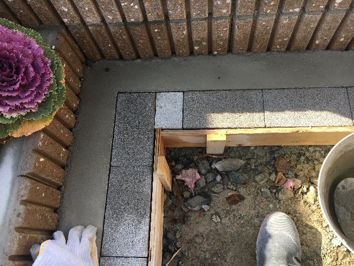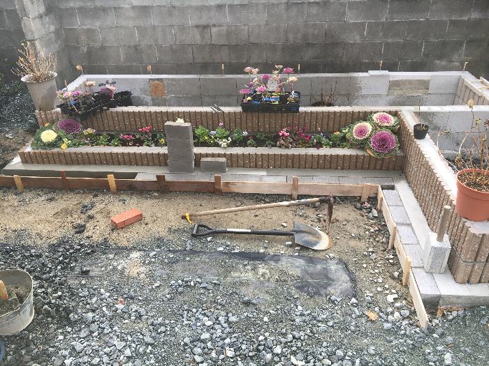 セメントレンガの敷設が途中だったママのビッグ花壇。