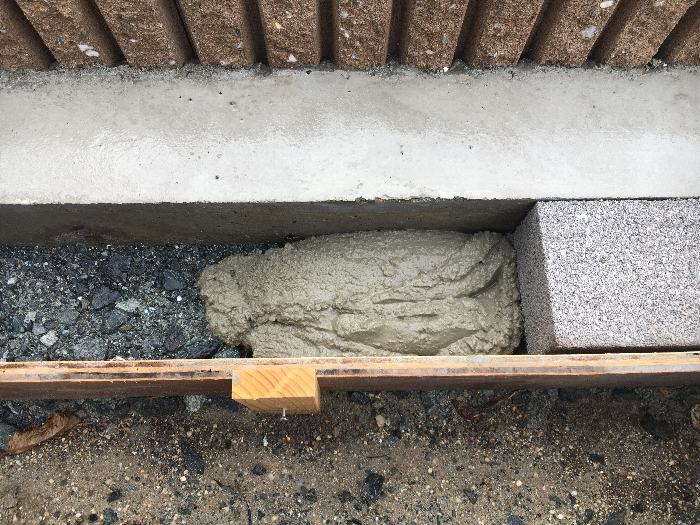 リブブロックの内側に施工した基礎固めのラインに沿うように
