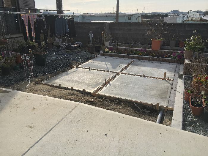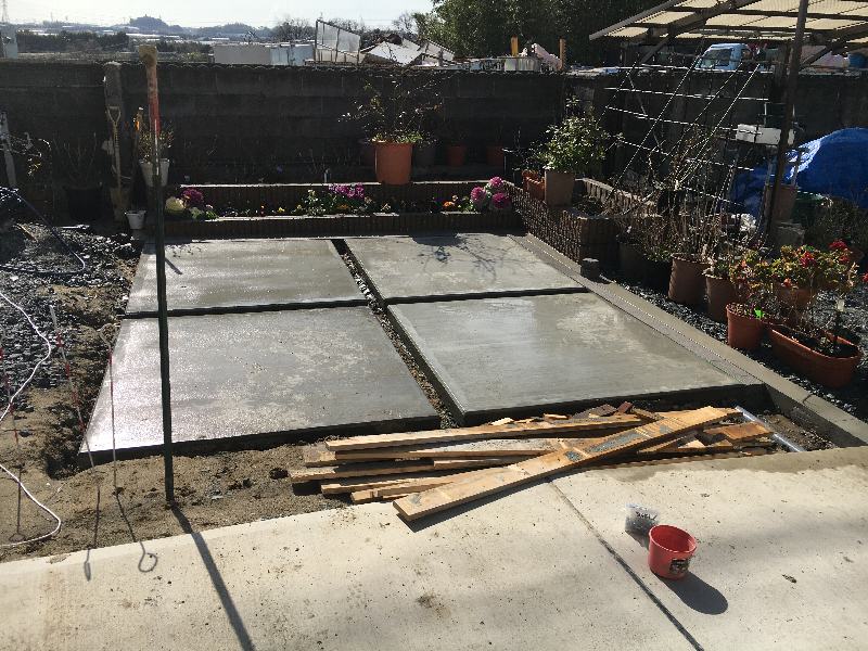 今回は写真手前のコンクリートアプローチとDIYで制作した