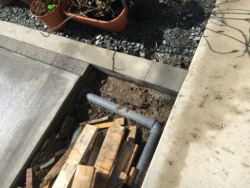 排水パイプが見えていますがこれはここに新設するミニ花壇