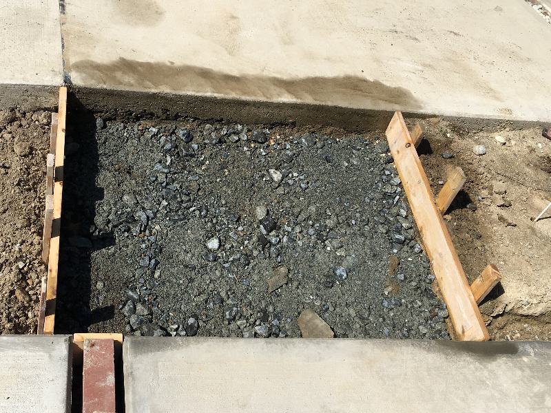 砕石を敷いて踏み固め、散水して再び踏み固めました。