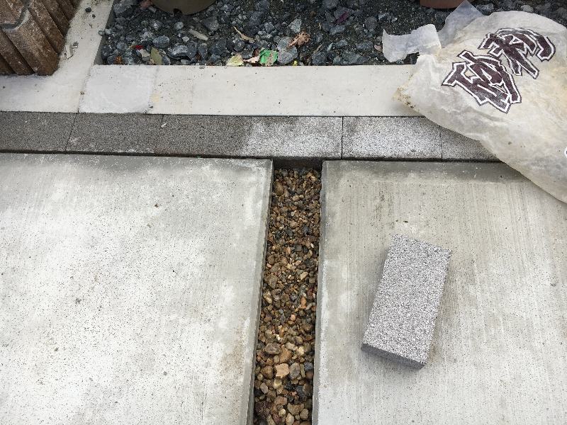 溝の底には子砂利を30ミリほど入れて、土間コンに降り注いだ