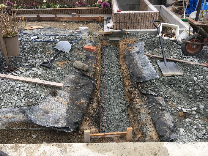 今回の施工は写真で見える花壇の折れ曲がったところから