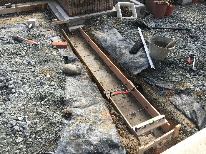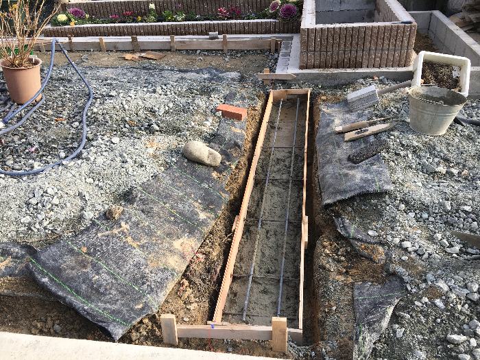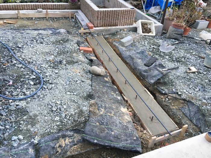 セメント30Kg、砂120Kg、そして砂利は庭の砕石を