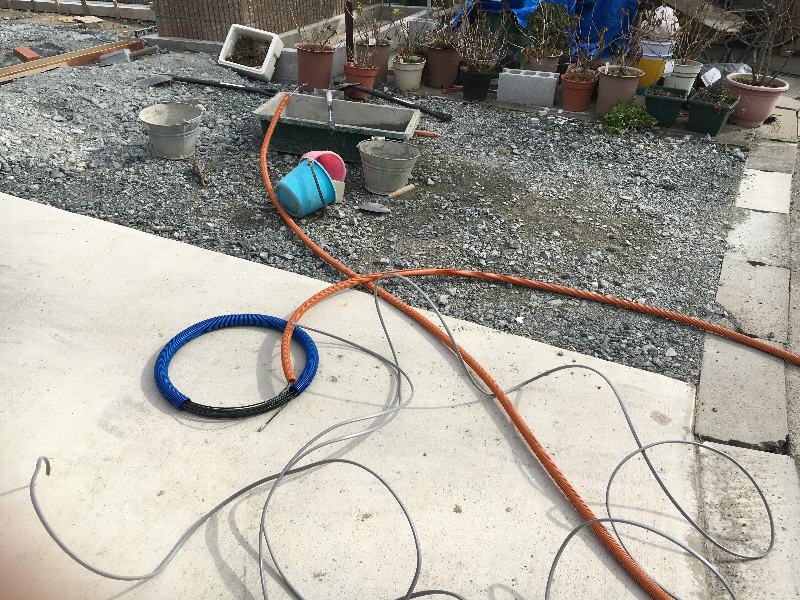 そして御母屋側からの配線は水道管のVP16で直線部分を、