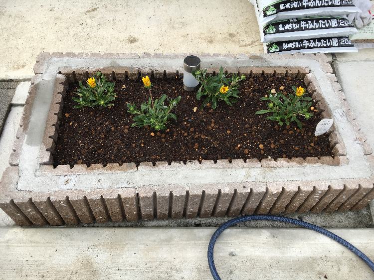花はカインズで購入した「ガザニア」を4本。