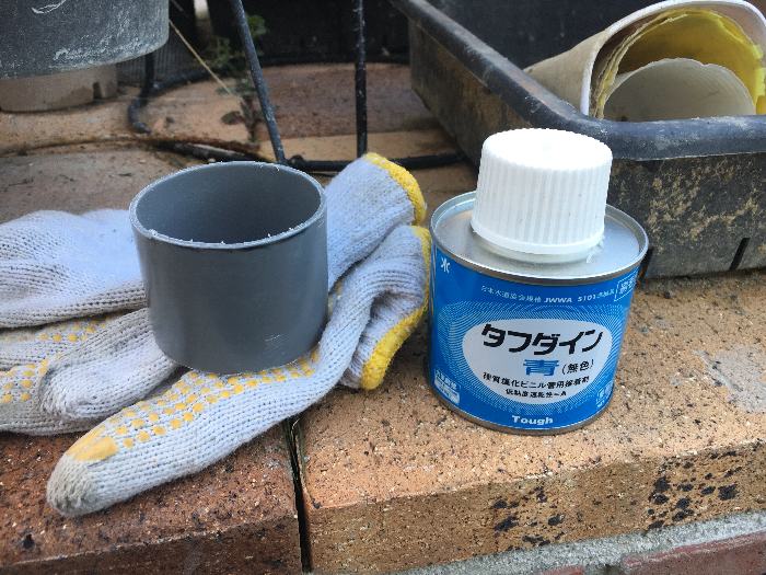 接着剤は塩ビを溶かしますのでこうして挿入するとマーキング