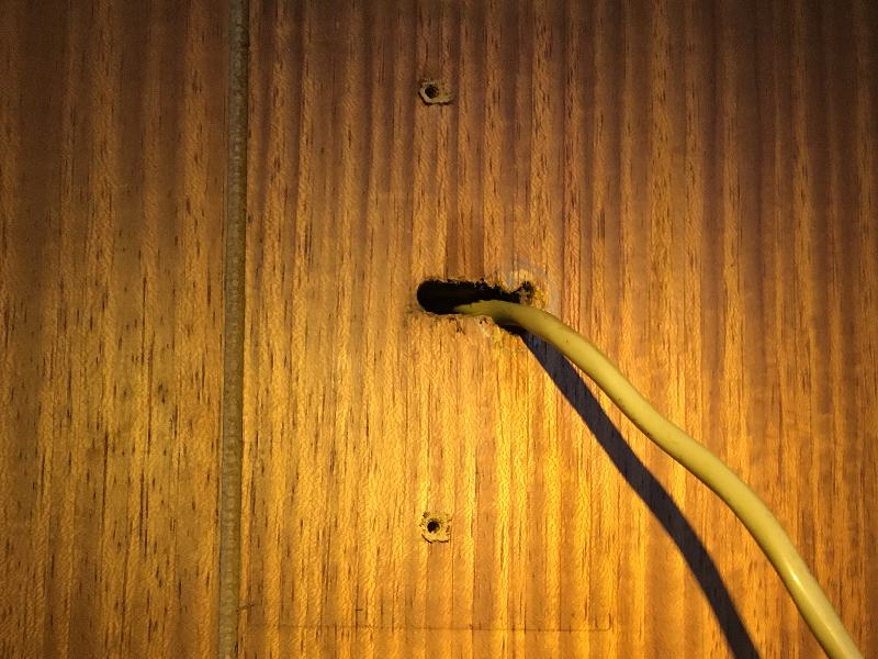 配線は壁の中へ押し込んでおきました。
