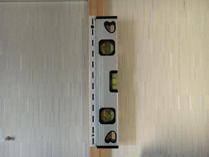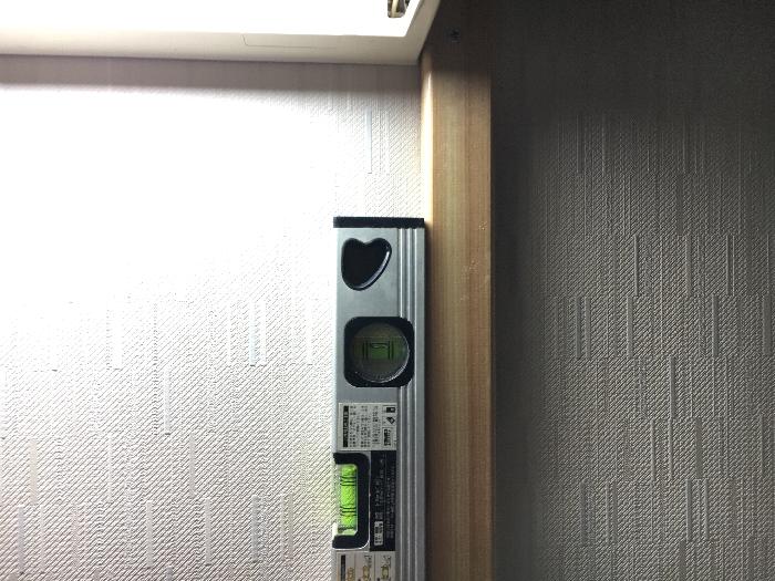 水平器を使って垂直と高さを確認しつつ固定しました。