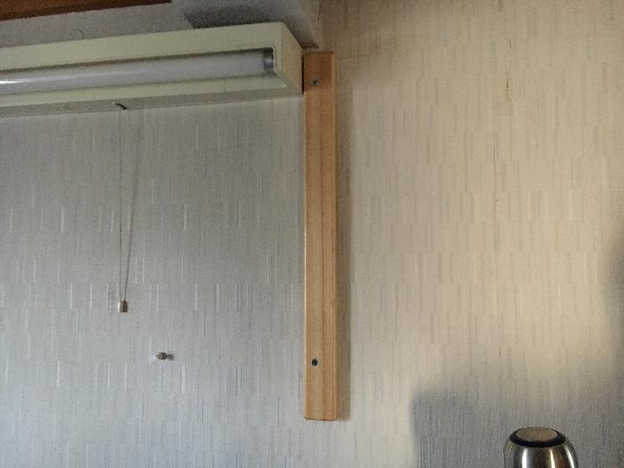 これで壁の中に横方向に打たれている胴縁の位置を確定。