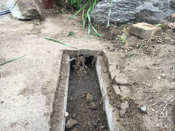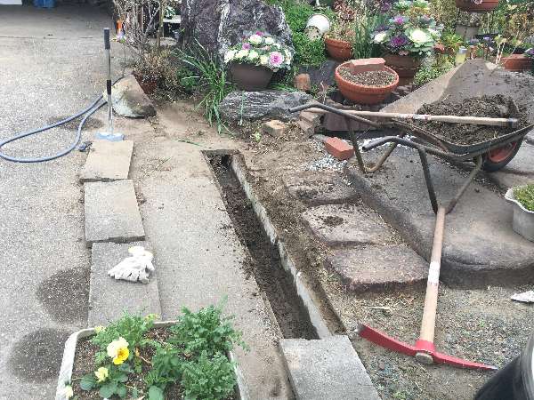 庭の側溝の土撤去。