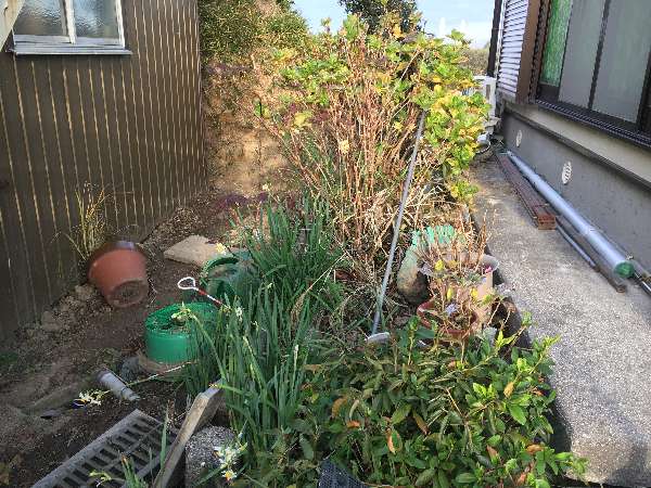 という事で、私の庭DIYの主戦場はこの犬走り下の土の流出を止める