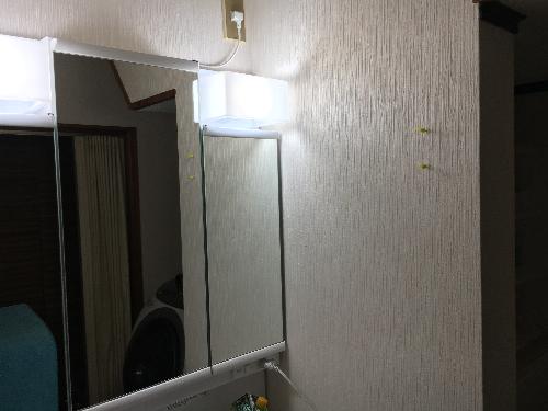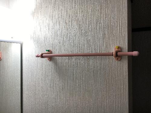 ピンクの物はタオル掛けですが洗面所のリフォーム前に