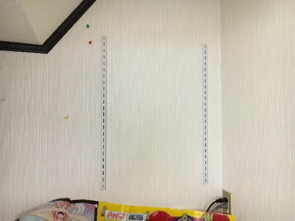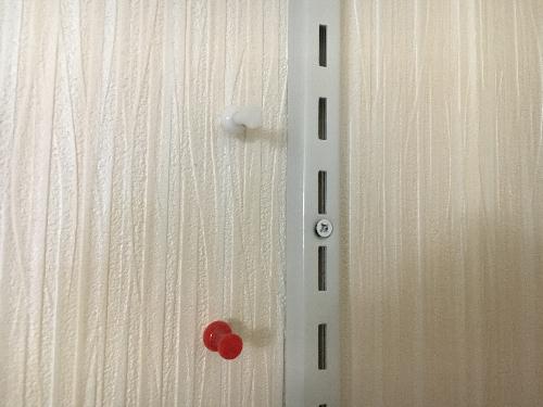 壁に棚の柱をビス止めする為に裏の様子を探ってみます。