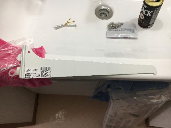 洗面所が綺麗になったので壁に小さな棚を作ろうと思い、