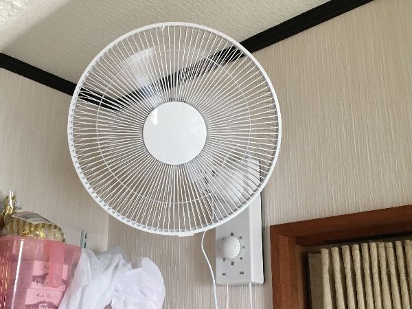 下地へのビス打ち込みが可能な事を確認したら扇風機を引っ掛ける