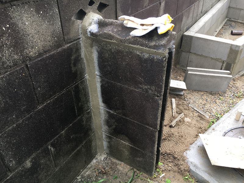 後で落ちたモルタルを回収して塗り付けるという感じでした。