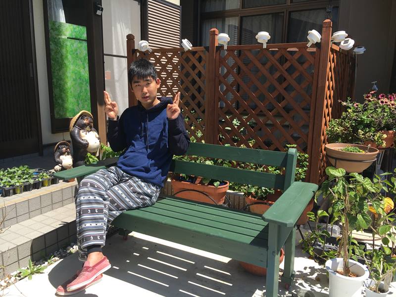 と言ったらガーデンベンチに座り