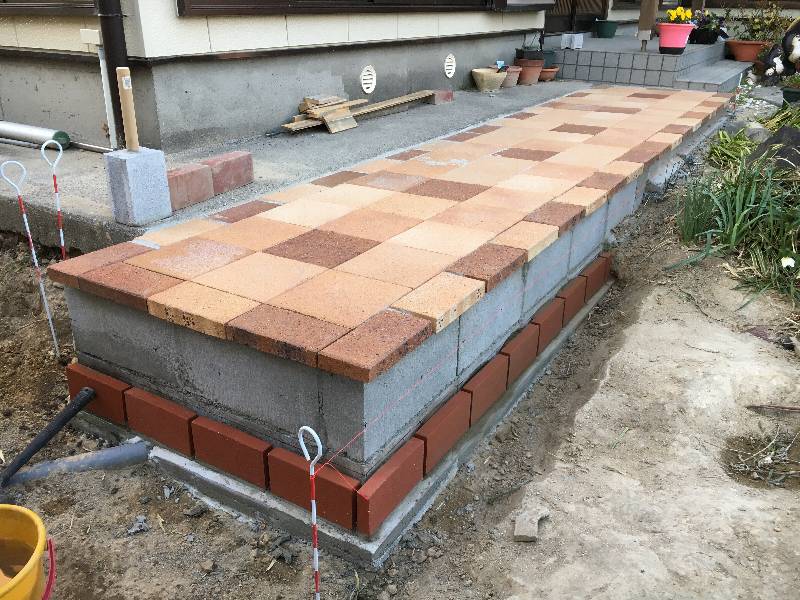 「側面のレンガ貼りです。