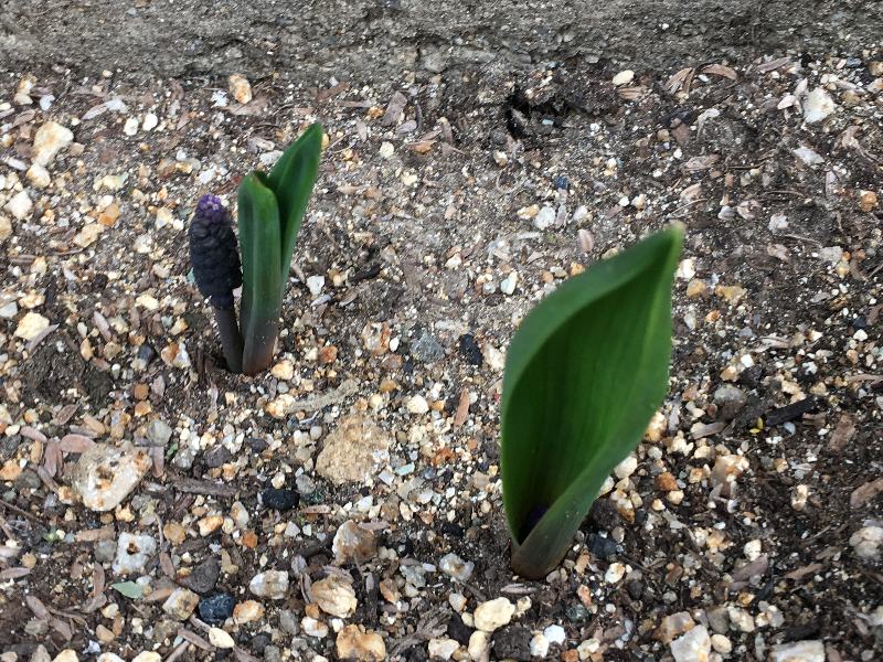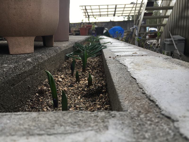 との間にママが植えてくれたムスカリ君達。