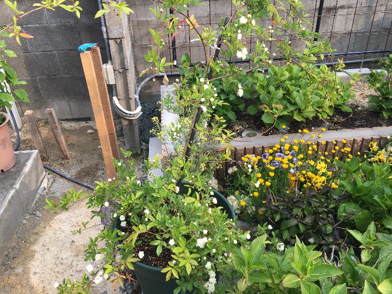 長さ4メートルの柵だから思い切り咲いて欲しい。