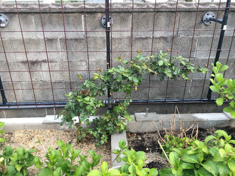 こちらは私がDIYで設置したワイヤーメッシュの薔薇柵です。