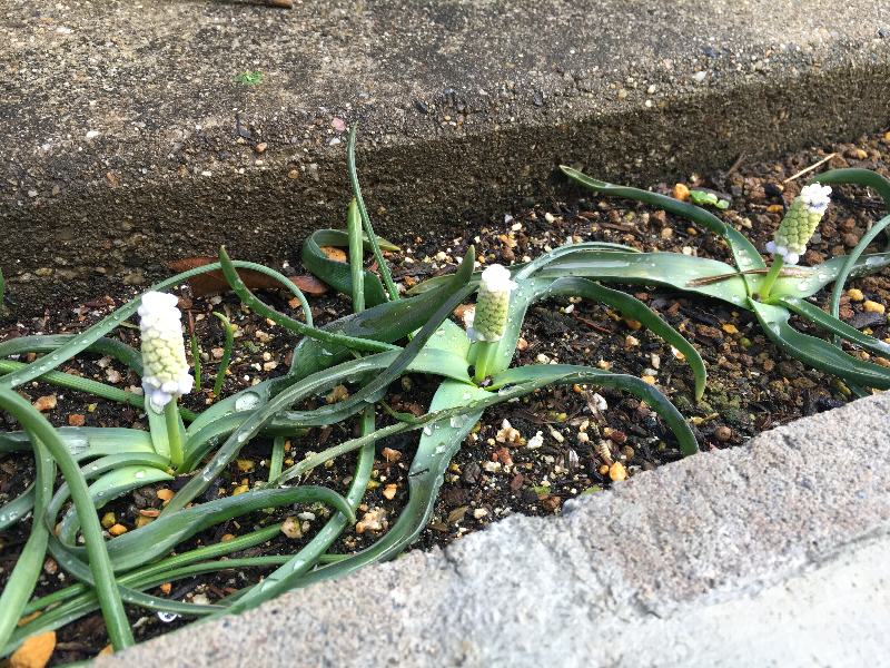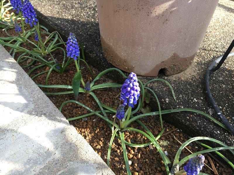 しかしこの土留めの細長い花壇のムスカリ君」達は