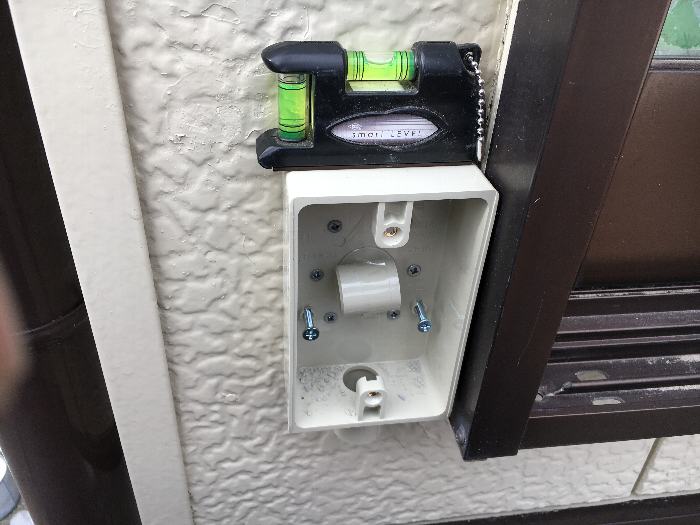 コンセントの設置場所は裏側に木が在る所を探して決めました。