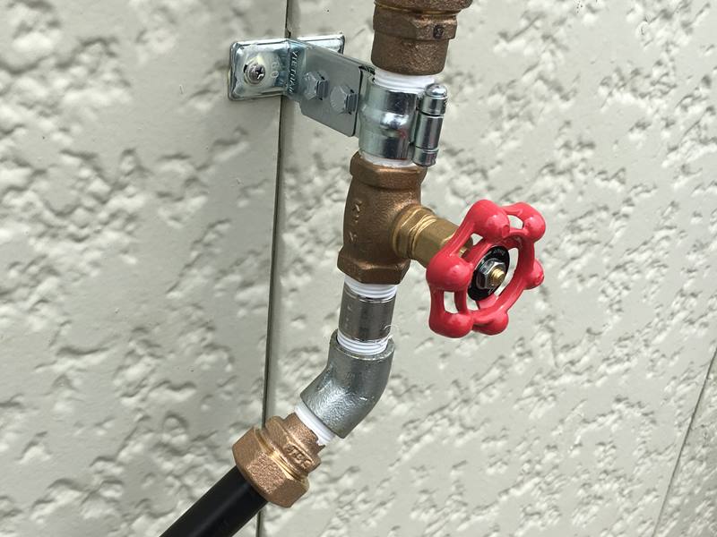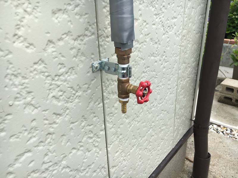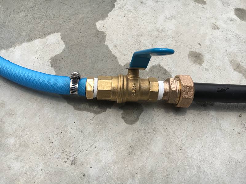 庭側に来るパイプの先端にはボールバルブを