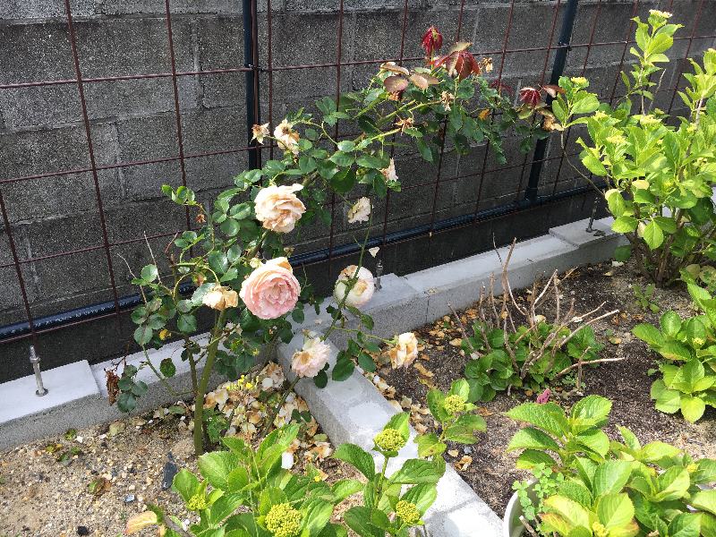 お隣さんとの境界ブロック塀の薔薇が見事に