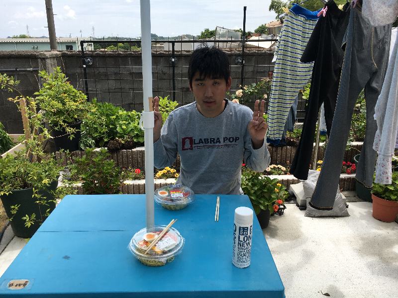 そんな中、本日は昼食を庭で長男と。