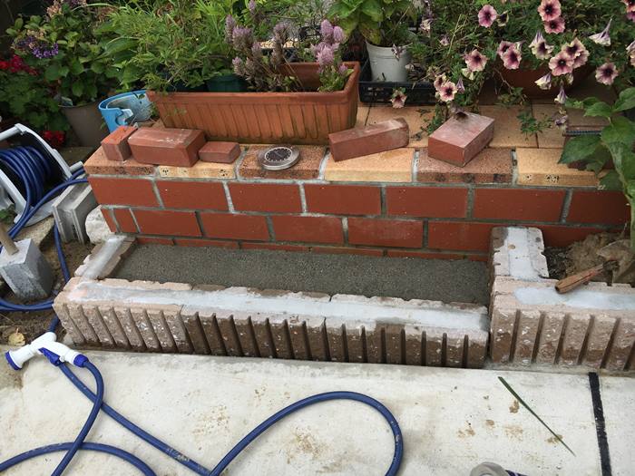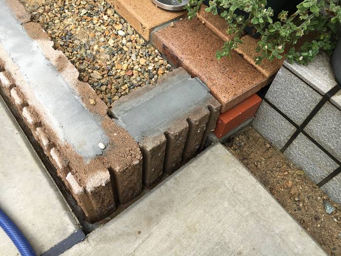 DIYでレンガデッキとコンクリートアプローチとの隙間