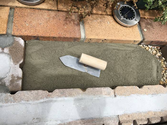 との僅かな隙間、約12ミリをドライモルタルで埋めて、