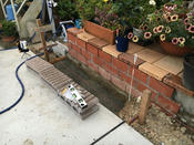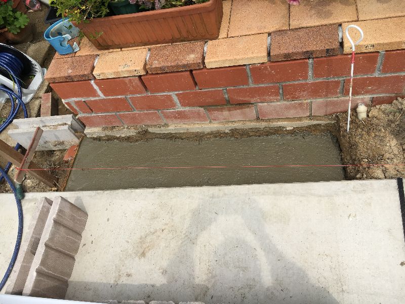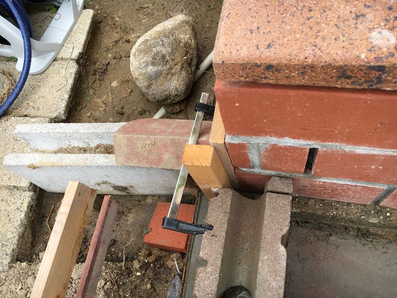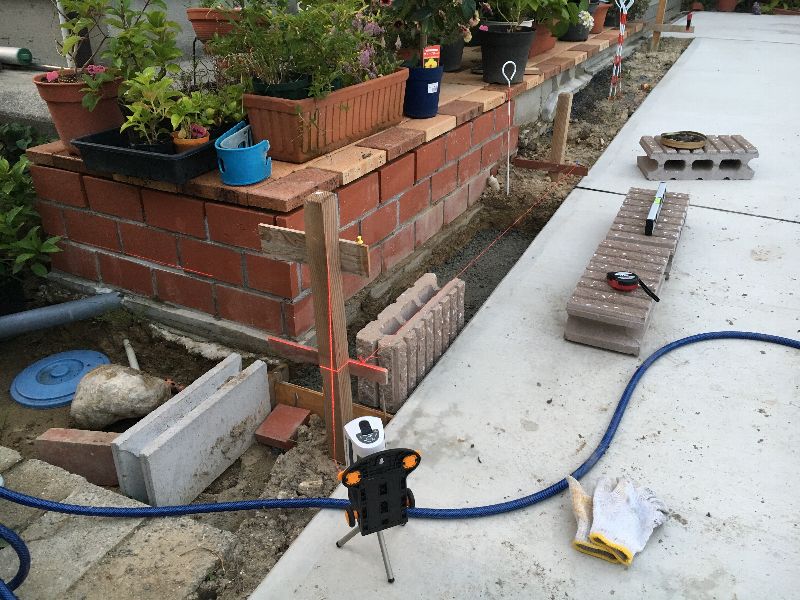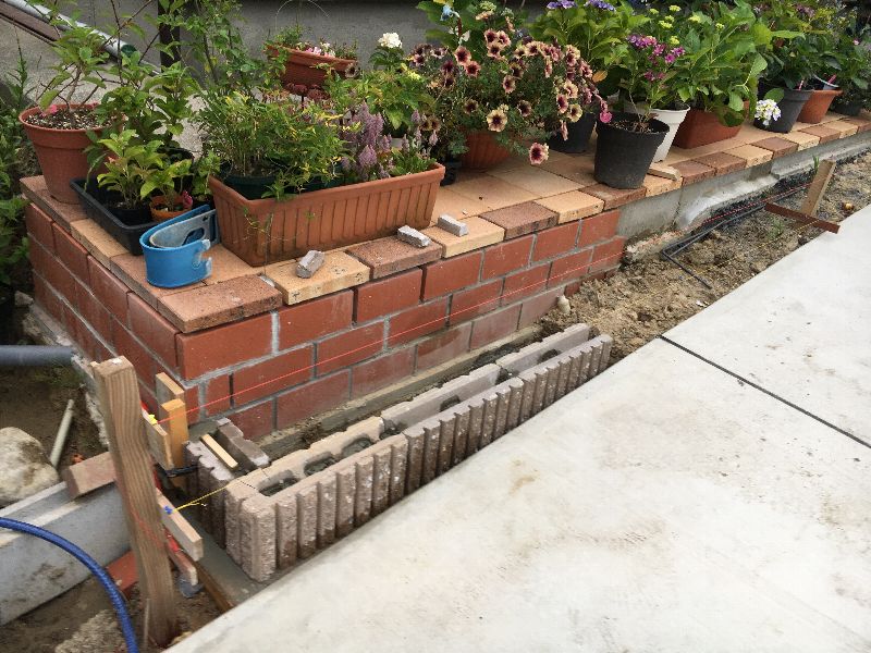 で、後ほどレンガとブロックの隙間にモルタルを充填しました。