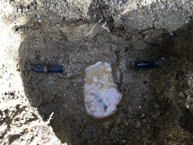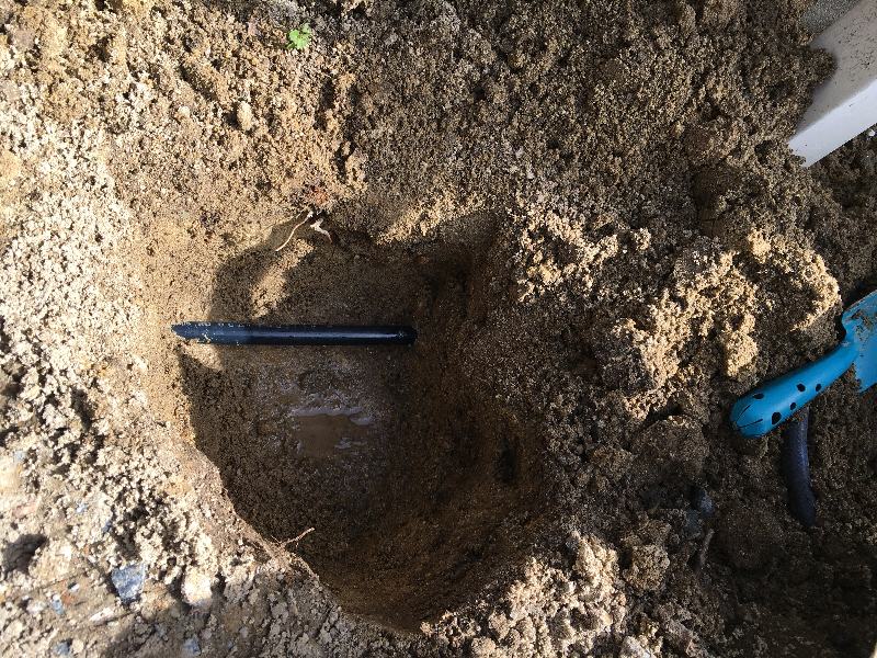 埋め戻してまだ日が浅いので簡単に掘れます。